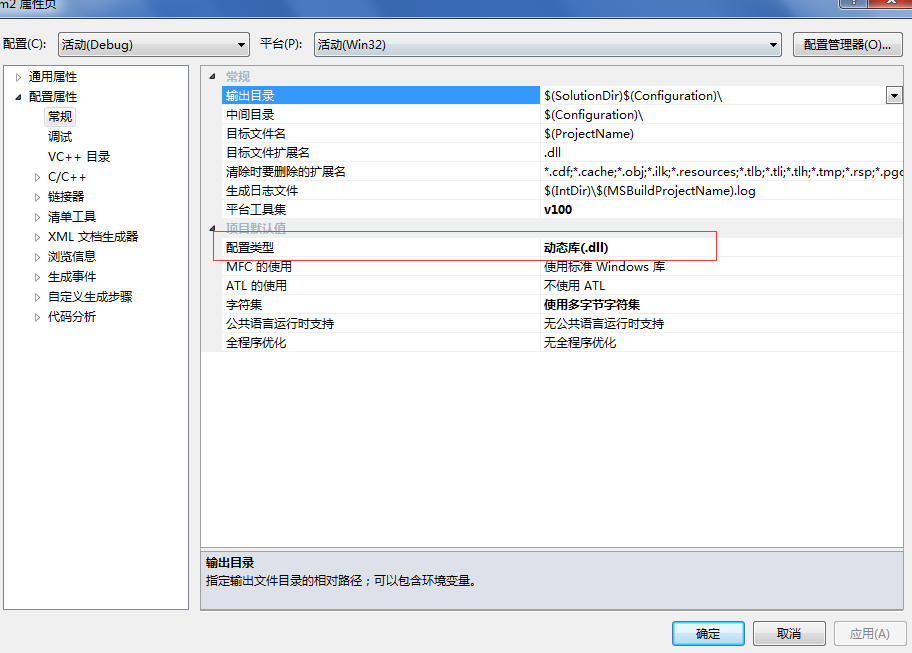 在windows环境下,直接在VS项目中选择编译成动态库即可,配置生成动态库如下图。